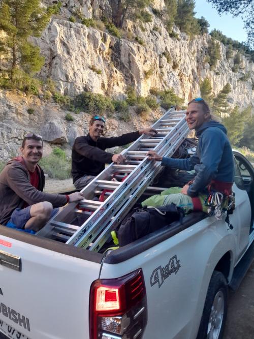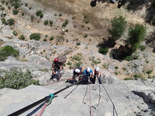 Une équipe de cordistes, guides de haute montagne, professionnels de l'escalade...